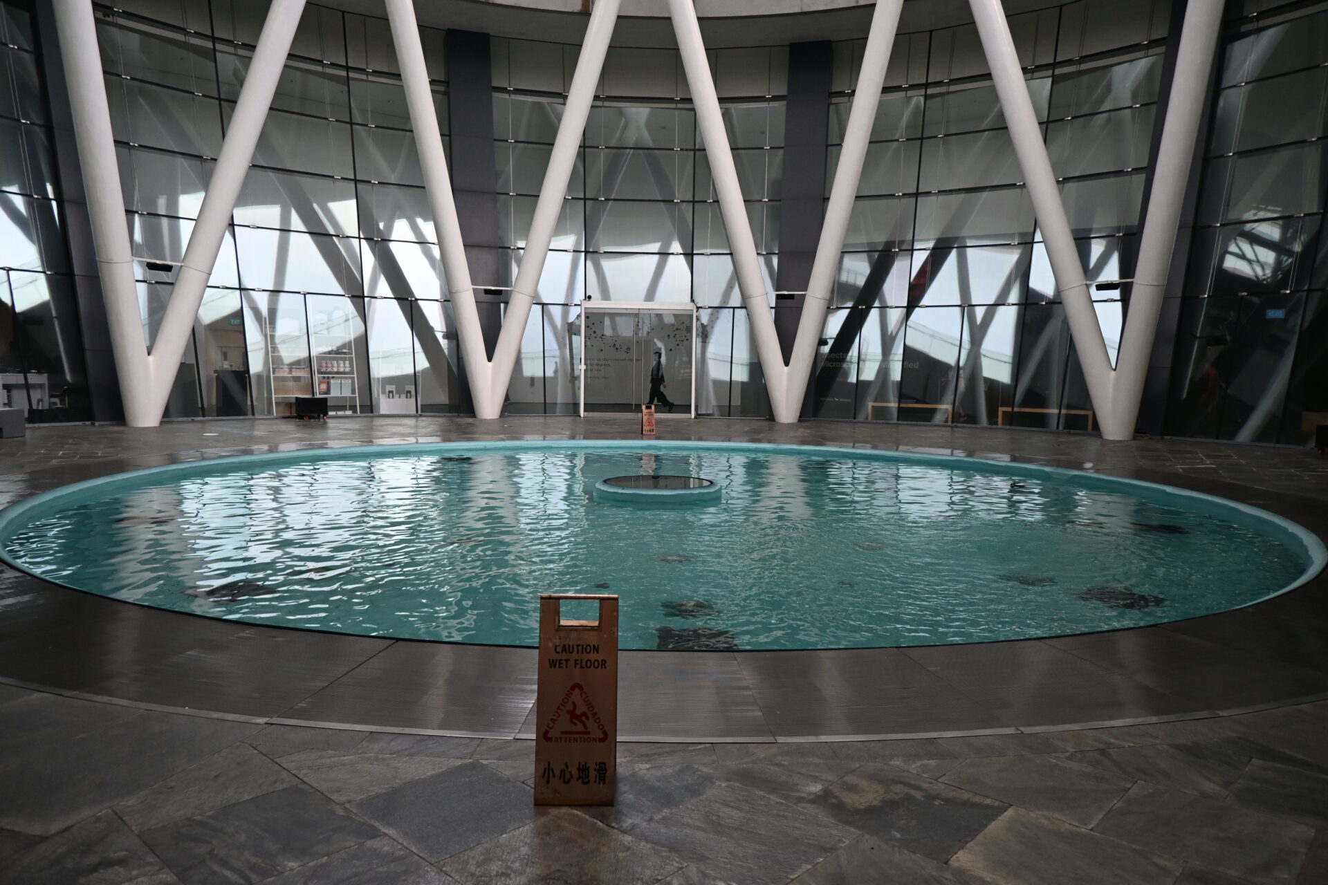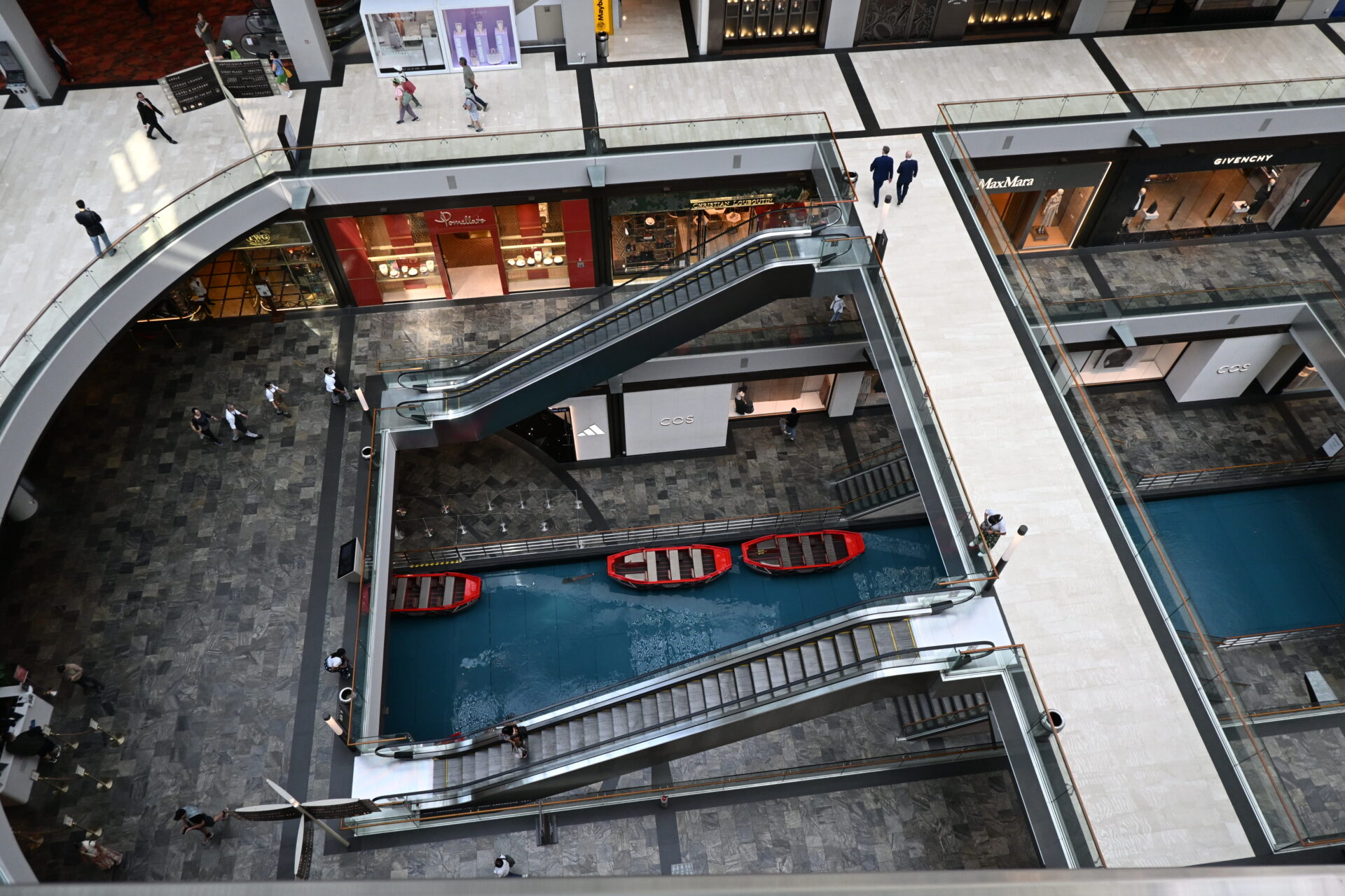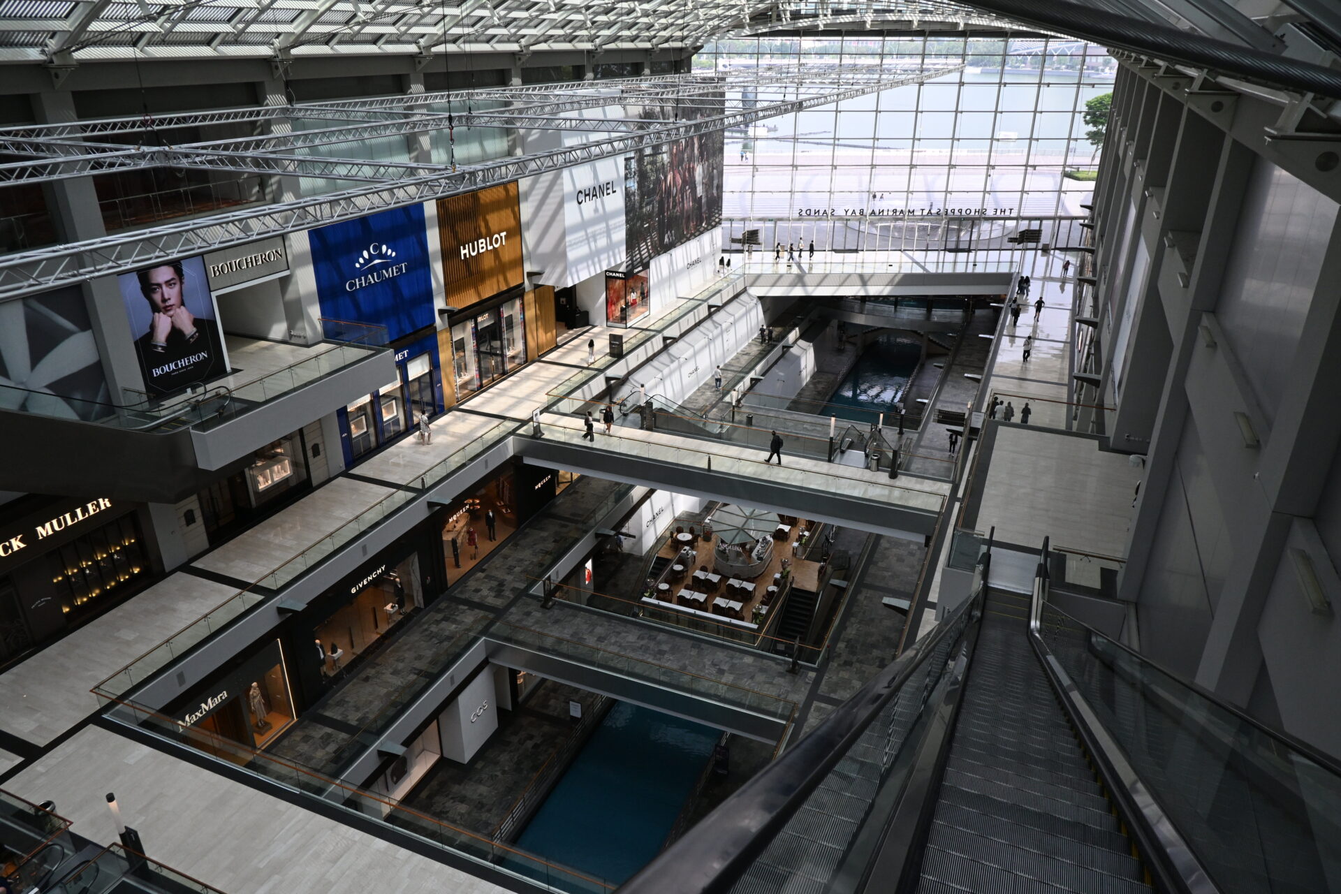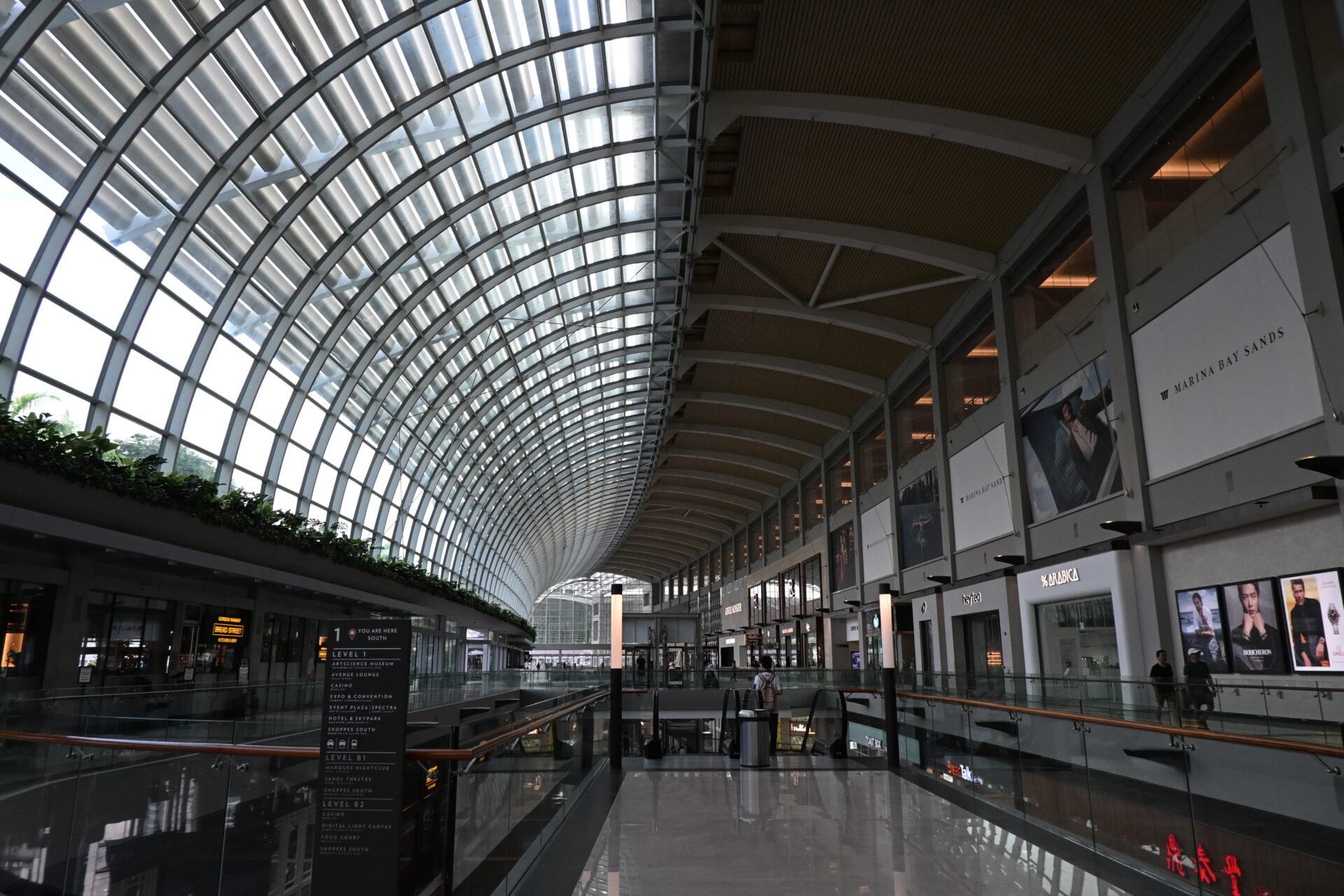 中に入るとこんな感じ。俺らは行く時間が早すぎてブランド店とかはまだ開店してなかったけど、なんというか、普通に建造物としてすごいなっていうのが印象。