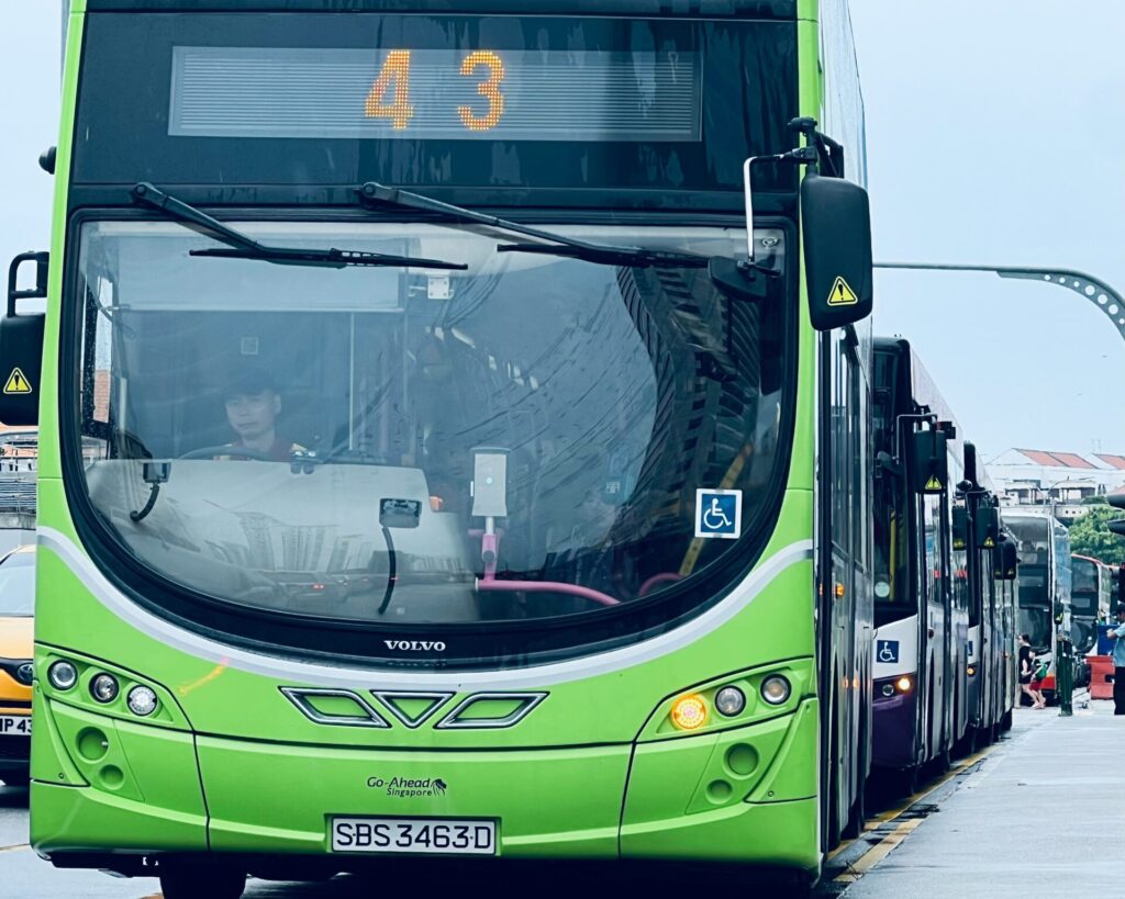 バス停は近くにあって、「ゲイラン・ロード」というバス停から100番バスに乗って「Aft Esplanade Stn ExitD」を目指す。所要時間は20分くらい。